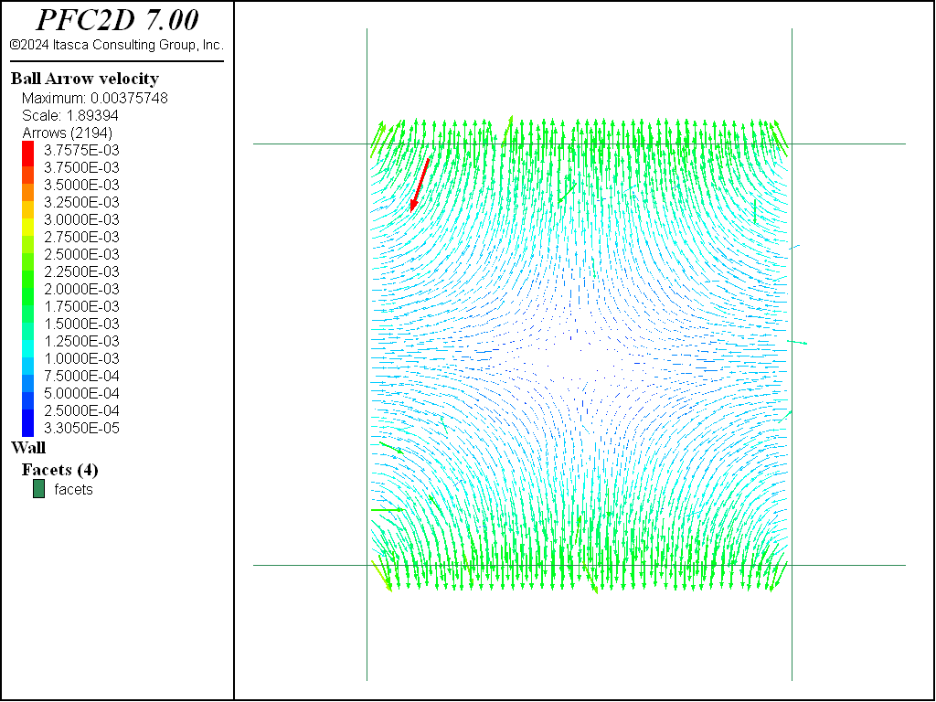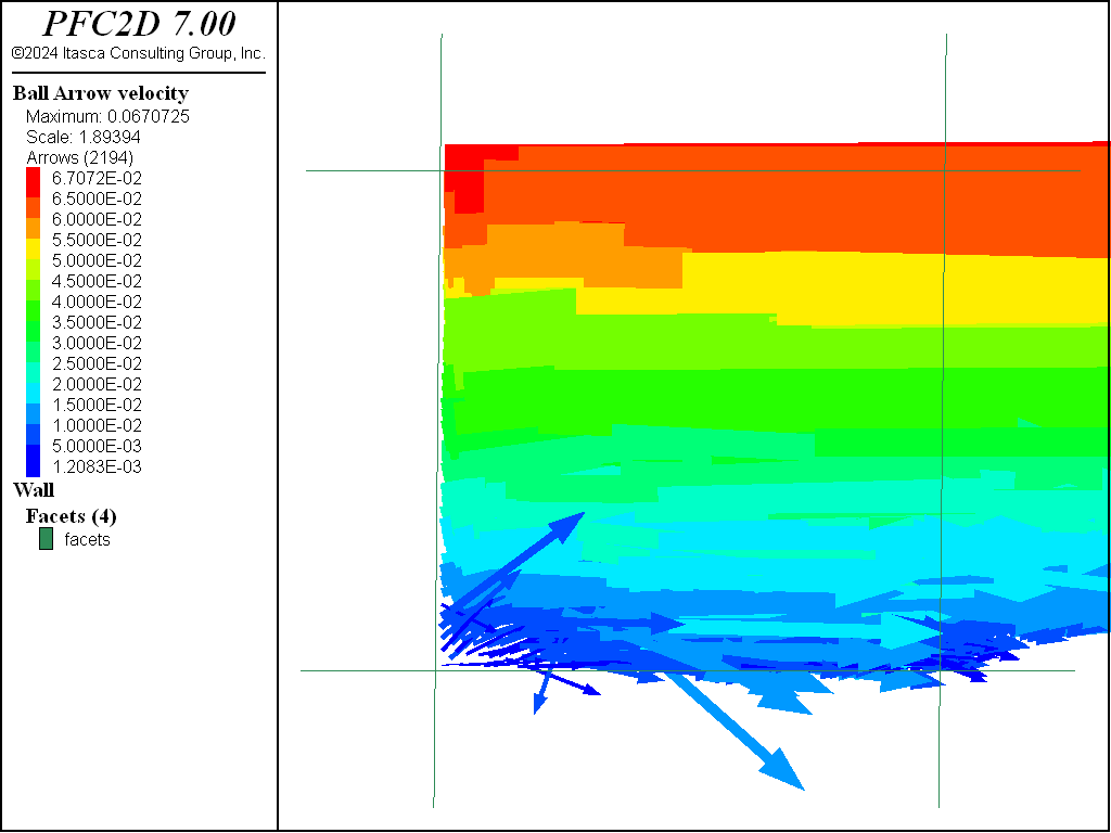 It is desirable that ball-ball and ball-facet contacts have different friction coefficients. One could use the CMAT to assign this property for ball-ball and ball-facet contacts, or use the contact property inheritance mechanism to achieve the same result. The latter approach is used in this example by directly specifying the fric property for balls (with the ball property