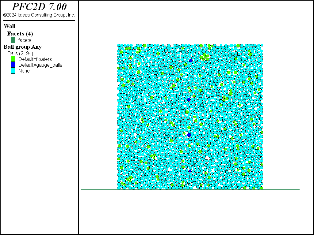 Finally, two FISH functions are invoked. The first function is defined in the file itself; it identifies balls that have no active contacts and groups them in a group named floaters. The second is a FISH function defined in “StrainUtilities.p2fis” that identifies gauge balls that will be used later in the simulation to measure strain.